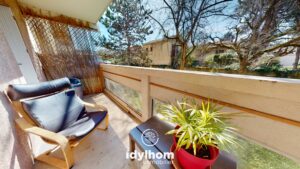 Le balcon sans-vis-à vis permet de profiter paisiblement de la vue sur le jardin de la résidence et reste ensoleillé toute l’année !