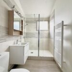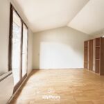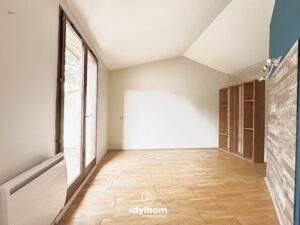 À l’étage, l’espace nuit se compose d’une chambre avec placard de 13 m2 ouvrant sur un balcon, d’un coin bureau, d’une salle d’eau de 7 m2 avec une douche à l’italienne, des rangements, un emplacement pour la machine à laver et un WC.