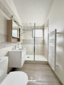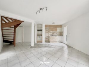 Cet appartement T2, en duplex, d’une surface totale de 50 m2, se situe sur le chemin de Croix Bénite, au nord de Toulouse, à la limite d’Aucamville.