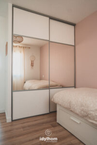 – baie vitrée coulissante à galandage en aluminium dans le séjour,