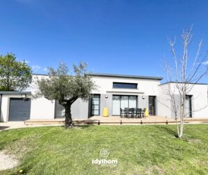 Cette belle villa T4, de plain-pied, d’une surface de 96,27 m2, construite en 2019, sur un terrain de 586 m2, se situe sur la commune du Lherm.