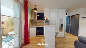 Il dispose d’une entrée avec rangement, d’une pièce de vie de 20 m2 avec une cuisine aménagée et équipée ouvrant sur une terrasse de 15 m2. La partie nuit se compose d’une chambre avec placard, d’une salle de bains et d’un WC séparé.