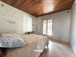 Elle se compose d’une entrée, d’une cuisine séparée de 19 m2, d’une pièce de vie avec cheminée, de deux chambres, d’une salle d’eau, d’un WC et d’un cellier.