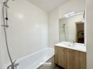 Il dispose d’une entrée, d’une pièce de vie de 27 m2 ouvrant sur une terrasse de 10 m2, de deux chambres avec placard de 11 m2, d’une salle de bains et d’un WC. Une place de parking accompagne ce bien.