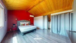 À l’étage, une mezzanine dessert une spacieuse suite parentale climatisée, comprenant une salle de bain et un WC indépendant.
